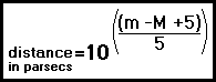 m = M + 5 • log10(distance in parsecs) -5